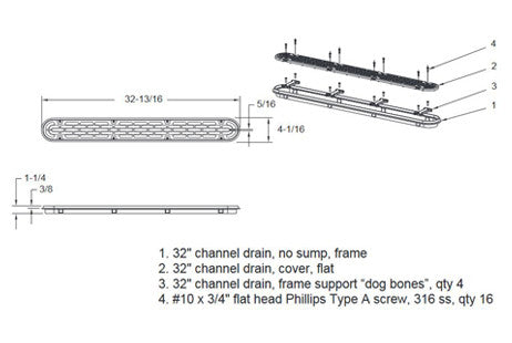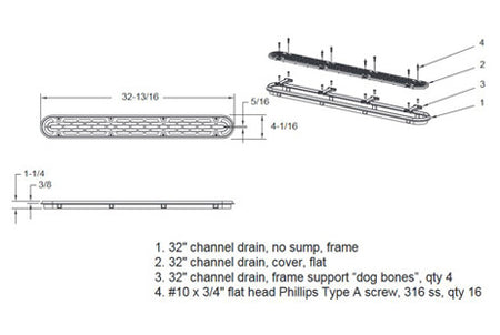 ⌄32" Channel Drain Flat Grate Anti-Entrapment Suction Outlet Covers and Frames