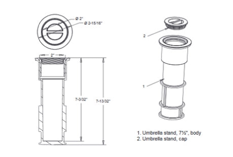 AquaStar 7-1/2" Umbrella Stands with Sleeve and Center Cap Black | US102