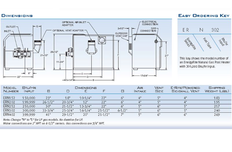 Lochinvar EnergyRite Pool Heater 400K BTU | Electronic Ignition | Digital Controls | Propane | ERL-402