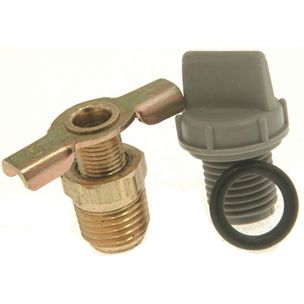 - Includes:* Grey plastic drain plug 1/4" NPT* Brass drain valve 1/4" NPT* O-Ring for grey plug