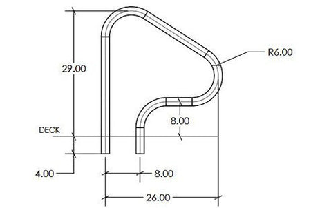 SR Smith 26" Figure 4 Handrail Single | 316L Marine Grade Stainless Steel | 1.90" OD .049" Wall Thickness | F4H-102S-MG