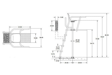 - Handrails and seat post are 304 stainless steel