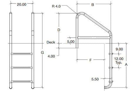 ⌄Standard Crossbrace Plus ladders are made from thick stainless steel tubing, and are suitable for heavy duty use in commercial aquatic facilities. These ladders feature a crossbrace for added stability, with either durable plastic or stainless steel treads.