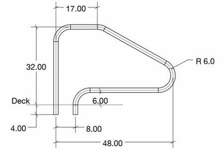 ⌄The DMS-101 is a 4-bend rail suitable for use on pool stairs and sloped entries. Constructed of polished stainless steel.